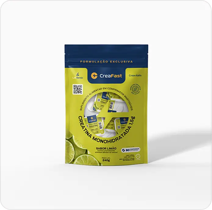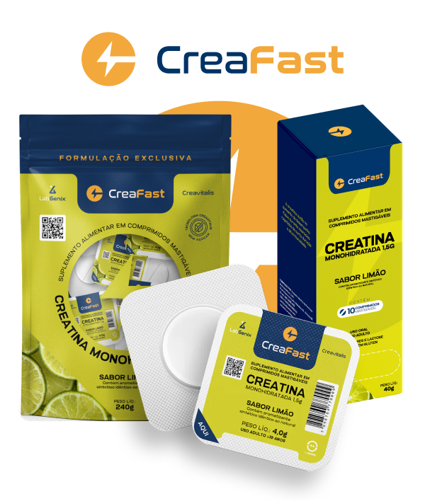 A Creafast, com formulação mastigável inovadora, proporciona aumento da força, resistência e recuperação, enquanto minimiza efeitos colaterais, como desconforto gastrointestinal.